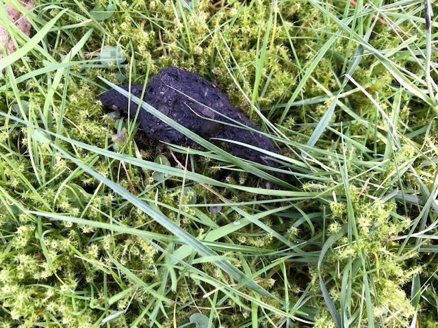 Looking like dead slugs, the half dozen or so black faeces spied on the lower grass area tells me the hedgehog –in- residence is no longer hibernating but is up and about again in the evenings.