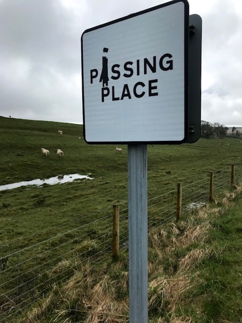 Two recent roadside artistic interventions between home and village caused some reflection. One – a pair of lost child’s woollen gloves displayed hands up at twigs end – has wit and style. The other hasn’t. Clearly a tall person altered the road sign lettering, or carried a stepladder in their vehicle to do so.