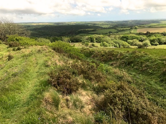 The Roman occupation may have put an end to native tribes setting up fortresses that could threaten imperial rule but some of these distinct man made features were reused beyond their own era. Just up the road from where we were staying, north of the village of Loddiswell which is itself situated on a hillside, there is one such place, and we were keen to pay it a visit.