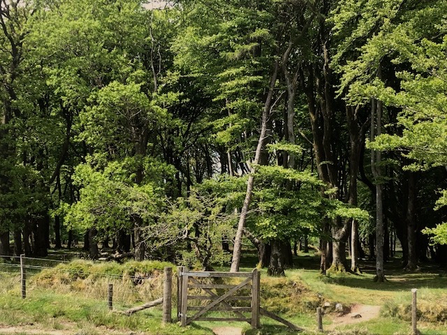 We parked inland, north of the works, by Brisworthy plantation. I was expecting to find a block of conifer. Many such plantations were established on ‘unproductive’ moorlands nationwide by the Forestry commission in the wake of WW1 to help meet the nation’s shortage of timber. Brisworthy though, it turns out, is a mature plantation of deciduous wood, walled and fenced, consisting mainly of beech, planted in the C19th. I think it must have been Lord Morley, the major local landowner, who was responsible, following the fashion for beech tree planting by his contemporaries, most notably on Exmoor.