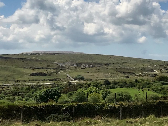 So, here we were, on the last leg of this holiday, coming away from the South Hams through Ivybridge, following the twisting B road that hugs the southeast contours of Dartmoor, heading for Tavistock on its western side. At Shaugh Prior the high banked hedges give way to wide highways and verges floured with dust from endless lorry loads of clay product. Looming above steep slopes of oak woodlands are waste tips of sand and stent (waste rock) produced over many years by the Lee Moor China Clay works. Extraction is by ‘wet mining’ in vast pits using high pressure hoses to create a slurry which is filtered to extract the fine soft white clay prized for its low plasticity. Huge amounts of waste are created in the process, hence the ‘mountains of the moon’ landscape that characterises this corner of Dartmoor.