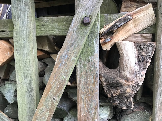 Cleaned out all the old nest boxes and added a couple in strategic places about the garden. Always fascinated by the shapes of trunks and boughs so I rescued this one with its cavity from the log pile and slotted it into the side of the west end log store. Maybe a pied wagtail or robin will take advantage of it this year as both species like this quiet corner.