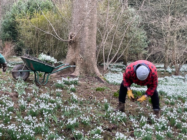 Some of the family took themselves off for a guided walk in the grounds of one of the county’s big houses and saw the gardens team plant flowering snowdrops ‘in the green’ as they have done for decades, so the vast swathes of them multiply year on year. Most are common snowdrops (galanthus novalis) but amongst them are a distinctive form of the common variety – the Sandersii Group’ – named after the man who discovered them at Chillingham, James Sanderson.
