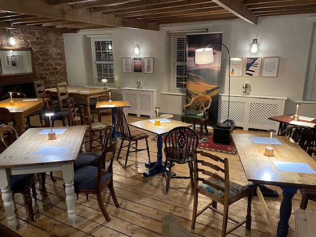 The function room upstairs set out with tables and chairs proves the most intimate of surroundings for this final gig for myself and fellow readers Grace and Wynne. A bonus in having writer Linda Cracknell and her partner Robin with us. Linda’s short story, ‘Crossing the Bar’ was originally commissioned and broadcast by BBC Radio 4 in 2018, and was inspired by Tennyson’s classic poem ‘. I picked them up earlier from Armathwaite station on the fabled Settle – Carlisle line a few miles away. A beautifully preserved Victorian village station, wreathed now in a swirling mist, my friends the only passengers getting off here, who were more than pleased to see me emerge from the gloom. Very atmospheric indeed.