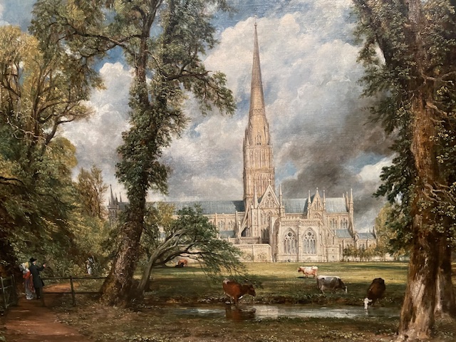 Constable’s studies of Salisbury Cathedral in different weathers are famous works, reminding us of his deep Anglican faith and concern for the church in the face of social and religious reform. I loved the attention to detail in this painting, commissioned by the bishop, seen at the far left of the picture with his wife. Constable’s celebrated portrayal of clouds and loose handling of paint would prove a major influence on contemporary French artists, helping to lay the foundations of impressionism. That would not have impressed his patron though, who we are told, disliked the conflicted cumulous and wanted a more serene sky.