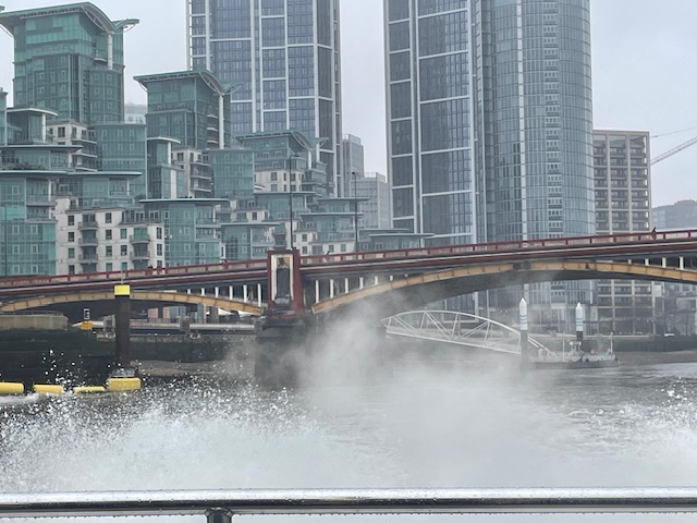 Arrived at Millbank by boat on one of the catamaran Uber river taxies that ply their trade on the Thames. Pricey, but worth it for the vistas afforded. Powerful engines allow for nimble sideways docking and a surprising turn of speed on the fast flowing floodwaters. Graceful bridges backed by sky blocking glass walled monoliths at Vauxhall with remnants of more graceful human scale buildings elsewhere on the river banks.