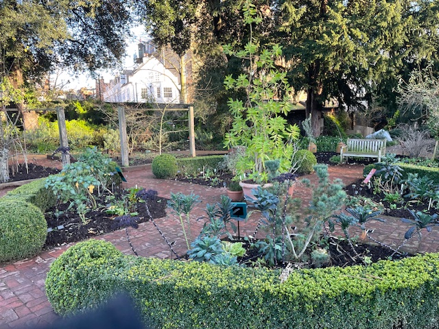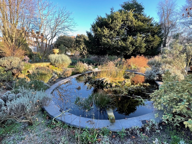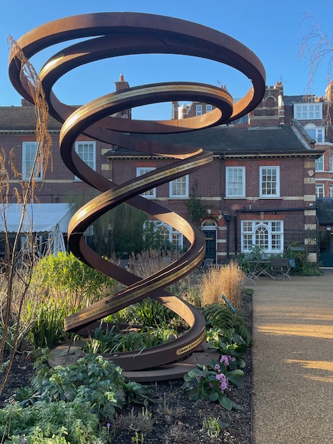 Although you wouldn’t know it at this time of year, the spiral eyecatcher of a contemporary sculpture, marking the garden’s 350th anniversary in 2023, also doubles as plant support in the summer months, which is pleasing.