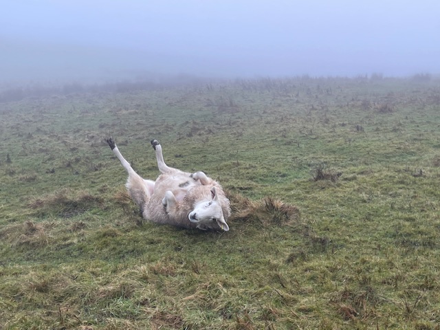 Earlier this year, one misty day, we stopped to right a cast ewe in our neighbour’s field. The animal’s gravid barrel body and dense fleece had stopped it righting itself, so glad to lend a helping hand. The flock were taken off last week, back to the farm, and now the biggest and best pasture is filling with ewes and lambs.