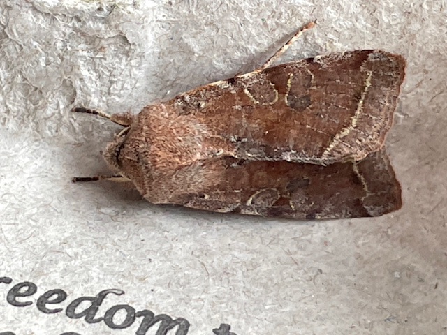 Starting to trap moths again. Amongst their number the usual early arrivals on the spring scene like Hebrew Character, Clouded Drab (pictured) and Common Quaker. Look forward to having more species visit as we warm and settle. That and following the progress of the nesting birds we know about while looking out for signs of where our other avian residents – wagtails, dunnocks, robins etc – will be bringing their broods into the world.