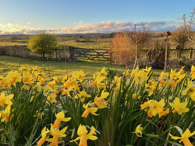 We’re hoping this dead hedge will benefit resident wildlife, act as a windbreak, and add another blended structural feature to the garden. I’d been gradually repositioning the bigger species of daffodils along the former fence line over the years so pleased to see they sit equally well, framed by the new hedge.