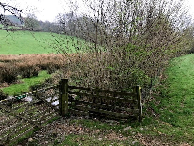 Large slabs of slate used as gateposts or hedges are traditional sights in a classic Lake District landscape. Delighted then to pass through a slate and wood style more turnstyle in appearance than step over style, complete with slide door for dogs.