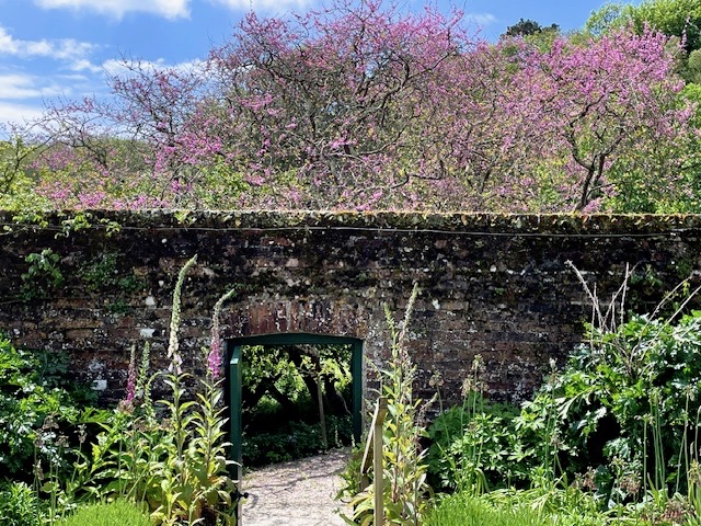 We lingered in Lutyens’ handsome refashioned walled garden in front of the house, with its wisteria adorned terraces and wide flower borders. Just outside were impressive specimen trees like magnolia and the wide spreading pink blossom glory of a venerable Judas tree (cercis siliquastrum).