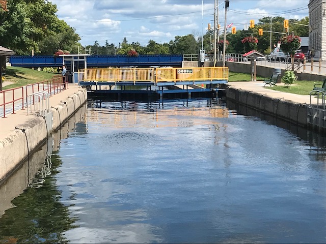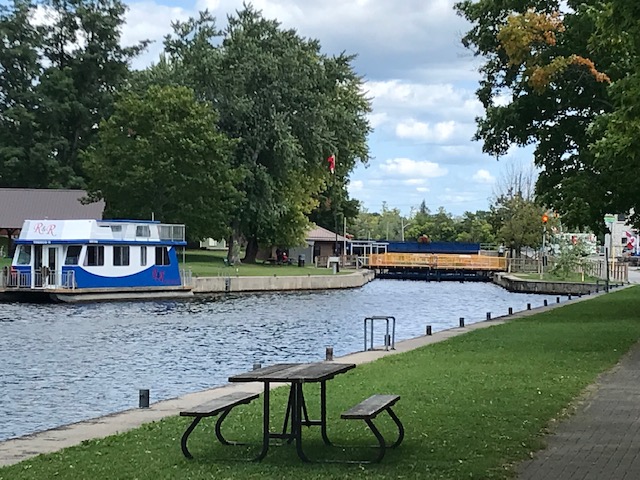 We took a trip to Bobcaygeon, an attractive small town whose historic centre is an island between river and canal and whose lock on the waterway links the two lakes it lies between. My companions discovered what the locally renowned Bigley’s shoes and clothing emporium and the Kawartha dairy had to offer. I meanwhile strolled around, witnessing the island’s access swing bridge in action and peeping in the windows of the preserved former watchkeeper’s lodge dating from a hundred years ago,