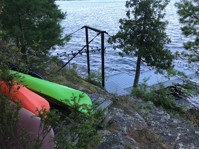 We saw a loon, one of north Americans most iconic water fowl on the lake, diving for fish. The birds distinctive calls at night haunt the air. Lake levels are some four foot lower at the end of summer because water is filtered off to top up the Trent-Severn canal system that links many of the major lakes in the region to the vastness of Lake Ontario to the south.